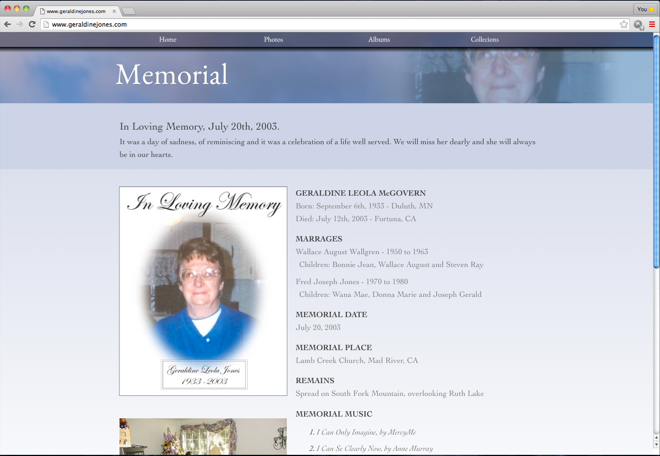 A memorial website created in dedication to my late mother.